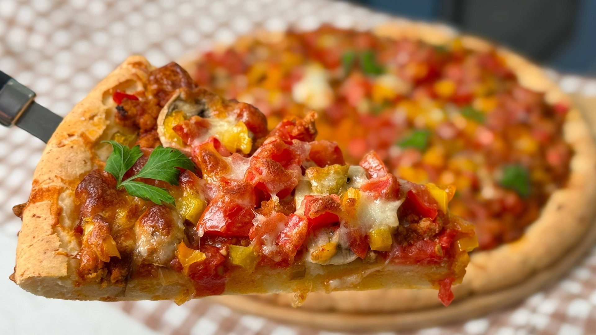 Моя «ленивая» пицца. Попробовала однажды приготовить из того, что было в холодильнике. Теперь постоянно пеку. Без дрожжей и пшеничной муки. Так полезнее и быстрее. Можно готовить на завтрак. Сочная, очень вкусная, ни чуть не хуже классической. Начинку можно менять по своему вкусу. Я показала ту, что мне нравится больше всего. ‼️ Количество муки контролируйте в зависимости от влажности вашего творога и жирности используемых продуктов. 📖Ингредиенты: Тесто: Творог в брикете: 200г Сметана или йогурт: 2 ст.л Яйца: 2шт Мука безглютеновая/рисовая/пшеничная: 250г Разрыхлитель: 1 ч.л Начинка: Фарш: 100г Соль, перец, базилик, сушеный чеснок Томатная паста: 1 ст.л Вода: 50мл Помидоры: 1шт Перец сладкий: ½ шт Шампиньоны: 2 шт Сыр: 100г ‼️ Наполнение можно менять, но не кладите слишком много начинки, может помешать подъему теста #пицца #завтрак #кчаю #выпечка #ппрецепты #пппицца #пиццабездрожжей #выпечкасфаршем