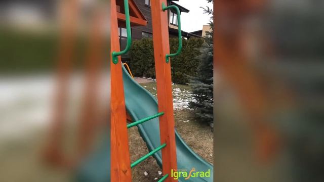 Детская деревянная площадка "Крепость Фани с рукоходом (домик)": https://igragrad.ru/catalog/detskie_ploshchadki/detskie_ploshchadki_fast/detskaya_ploshchadka_dlya_dachi_klubnyy_domik_3_s_truboy/ Комплектация детского комплекса IgraGrad "Крепость Фани с рукоходом (домик)": - двухуровневый домик с деревянной крышей и красивыми пластиковыми окошками; - конструкция скалодром с камнями; - волновая горка (США) с высоты 1,5 м; - веревочная лестница; - деревянная-металлическая лестница; - качельный модуль; - гибкие качели на цепях в резиновой оболочке (2 шт.); - трапеция с кольцами на цепях в резиновой оболочке; - рукоход; - качели "Гнездо" 100 см; - комплект металлических ручек (2 комплекта); - доска для игры в “Крестики-нолики”; - бинокль/телескоп; - руль/штурвал; - крепежный элемент "Якорь" (2 шт.) - комплект фурнитуры; - руководство по сборке Габариты игрового комплекса для детей составляют: - длина, м: 6,52; - высота, м: 3,0; - ширина, м: 3,5; - высота платформы, м: 1,5 - платформа, м: 1,2 х 1,8 Мы в социальных сетях: https://www.facebook.com/igragrad https://www.instagram.com/igragrad https://vk.com/igragrad https://ok.ru/igragrad Наш сайт: igragrad.ru Компания IgraGrad - производитель детских игровых площадок для дачи, спортивных комплексов и детских зимних горок.
