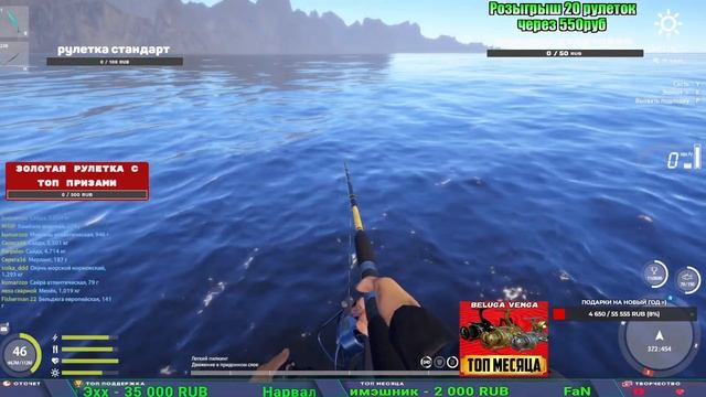 Поддержка донатом https://www.donationalerts.com/r/kalyamba11 Альтернативный донат https://new.donatepay.ru/@1032463 ТОП МЕСЯЦА ПОЛУЧАЕТ ЛЮБУЮ ВЕНГУ ИЗ МАГАЗИНА Если стрим лагает,смотри стрим на трово https://trovo.live/s/Kalyamba_na_Ribalke Мой ВК - https://vk.com/kalyantv НИК в игре kalyan11 НАШ ДИСКОРД СЕРВЕР https://discord.gg/mSbnTJK8TB Заказ водоема на 1 час - 500р ( весь стрим 2500р ) Модерка на канале 1200р ( каждая следующая на 100р больше) Озвучка доната на 40р,50р,100р,200р,300р,500р,1000р ✅Призы в рулетке "ЗОЛОТАЯ" ✔ ЗОЛОТО ✔ ПРЕМ ✔ КАТУШКИ РАПТОР 40, АЗИМУТ 10000, СИЛЬВЕР 80, ТАЙГА с 30 ✔ ПАЛКИ ПИЛКЕРНАЯ, ДОНКА МОРСКИЕ, ✔ РОД ПОД, СТУЛЬЯ ✅Призы в рулетке СТАНДАРТ : ✔ катушка "РАПТОР 40" ✔ катушка "АЗИМУТ 10000" ✔ катушка "ТАЙГА С30, С40," ✔ катушки 60 для медного ( ЭВИИ, НАТОРЫ, ГОЛДА, и тд) ✔ ПИЛКЕРНОЕ УДИЛИЩЕ КОРОЛЕВА ОКЕАНА ✔ Морское Донное удилище ✔ прем ( 3, 7, 30 дней) ✔ золото ( 1, 3, 5, 10, 20 ,50) ✔ билет на море ( 1, 3, 5 дней) ✔ голд наживка и др. ✅Призы в рулетке "СТАРТОВАЯ" ✔ катушка "silver80" ✔ катушка "БЕЛЫЙ КАЛИБР" ✔ катушка "Черный калибр" ✔ катушка "Протон" ✔ катушка "Нарга 6000" ✔ Набор Фидерист и спинингист ✔ Карповик Фортуна ✔ фидерные удилища ✔ прем, золото, алкашка, наживки и тд P.s Рулетка это не казино, а награда за поддержку стримера. Вечный ТОП ПОДДЕРЖКИ (11.05.2024) 1. Dimon_pokemonchik 119 784 2. Interceptor 75 508 3. Skreb79 71 261 4. une personne 68 619 5. Нарвал77 31 550