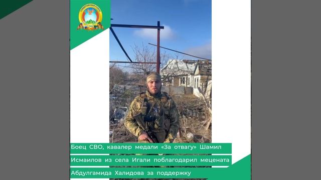 Боец СВО, кавалер медали «За отвагу» Шамил Исмаилов из села Игали поблагодарил мецената Абдулгамида