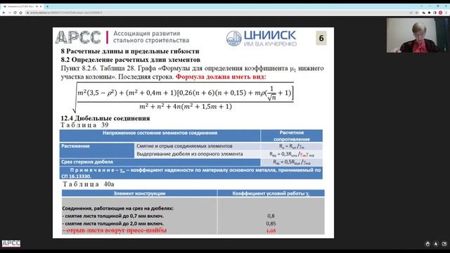 Начало: 00:20 Спикер: Гукова Маргарита Ильинична, канд. техн. наук, почетный строитель РФ, заместитель заведующего лабораторией нормирования, реконструкции и мониторинга уникальных зданий и сооружений (НРМУЗиС) ЦНИИСК им. В. А. Кучеренко АО «НИЦ «Строительство». На вебинаре будут рассмотрены изменения №3 к нормам на проектирование стальных конструкций (СП 294.1325800.2017), в состав которых вошли 10 разделов, включающих требования по расчету балок с перфорированной стенкой из прокатных двутавровых балок, расчет на устойчивость стержней швеллерного сечения, подверженных сжатию и изгибу в двух плоскостях и др. Необходимость внесения изменений в СП 294.1325800 «Конструкции стальные. Правила проектирования» была обусловлена разработкой новых видов конструкций и их расчетов, а также совершенствованием расчетов конструкций, благодаря непрерывному развитию строительной науки. Разработанные изменения учитывают современное состояние строительной науки в области расчетов и проектирования стальных конструкций, позволяют проектировать при снижении сроков строительства экономичные конструкции по современным технологиям с использованием новых элементов конструкций.