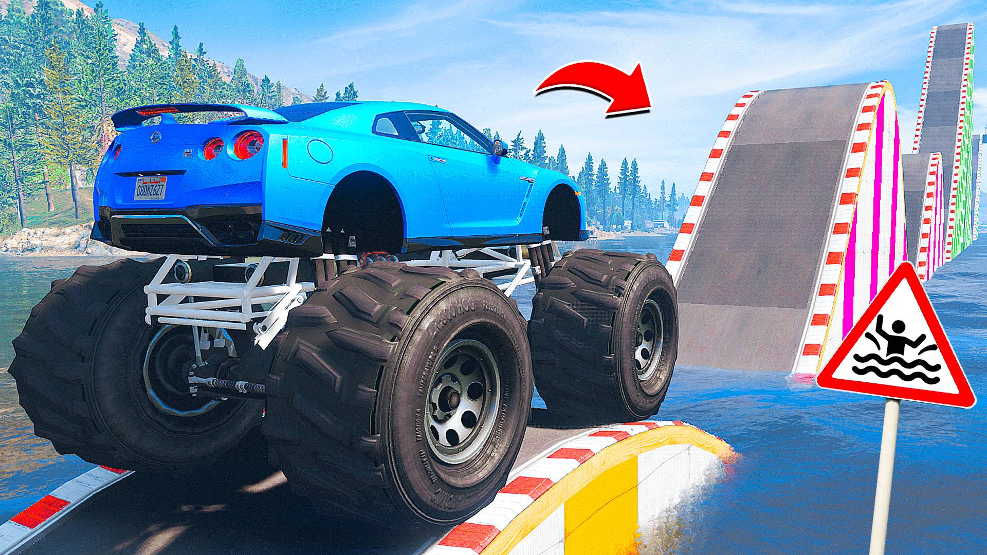 ПРОЕХАЛ ВОДНЫЕ ТРАМПЛИНЫ на ГИГАНТСКОМ НИССАН ГТР в ГТА 5 МОДЫ - ЭКСПЕРИМЕНТЫ в GTA 5 MODS