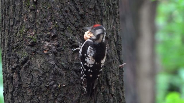Птенец дятла не справился с целым грецким орехом