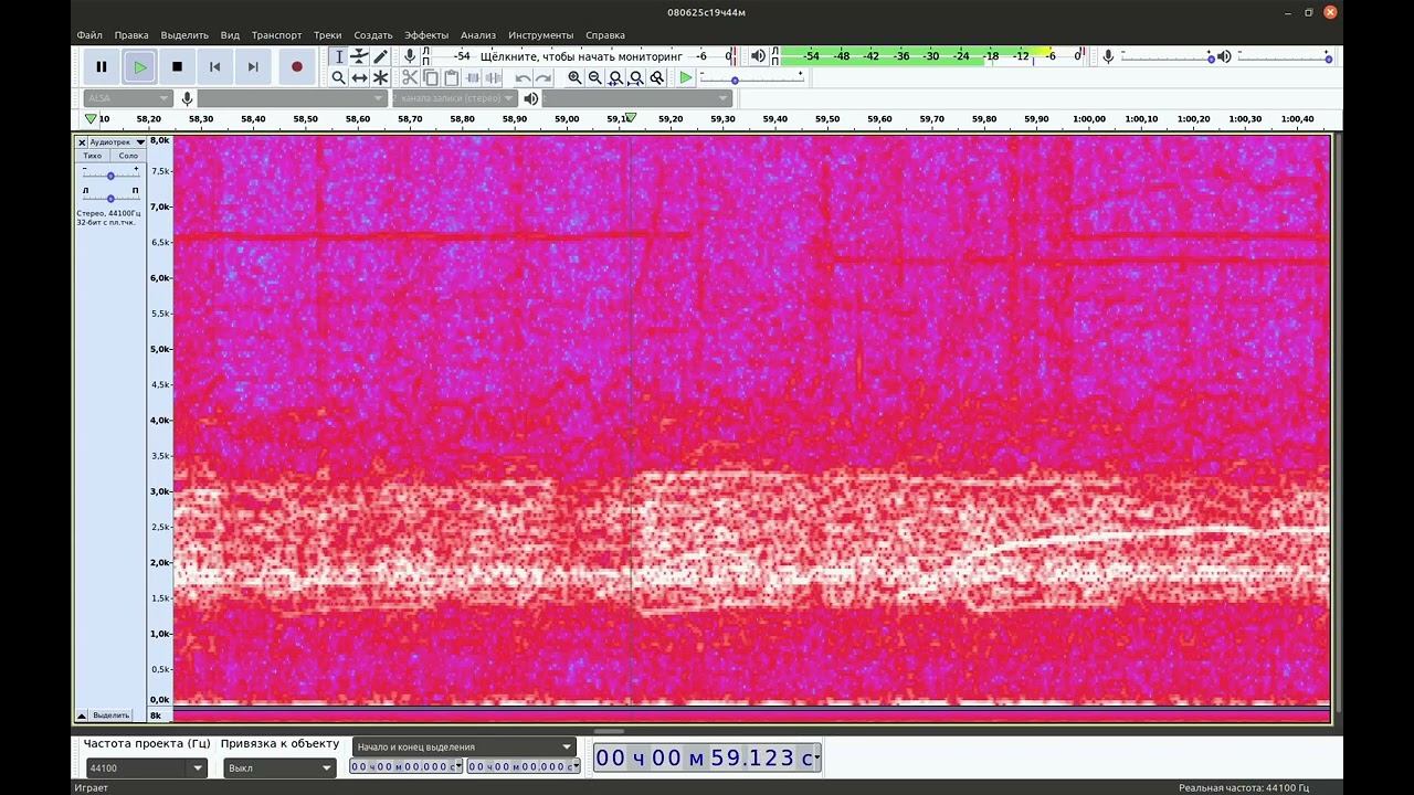 Крик Земли 08-06-2025 старт19:44(UT+3h) 44ч - ускорено 1000Х - 1 Гц = 1000 Гц