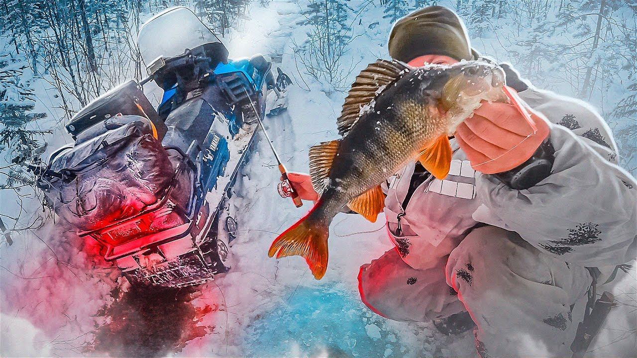 РЫБАЛКА В ГЛУШИ СЕВЕРНОГО ЛЕСА. ПЕРВОЛЕДЬЕ НА ДИКОМ ОЗЕРЕ. ПОПАЛ В РУЧЕЙ НА СНЕГОХОДЕ. КРУПНЫЕ ОКУНИ