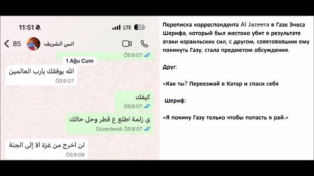 Переписка корреспондента Al Jazeera в Газе Энеса Шерифа, который был жестоко убит