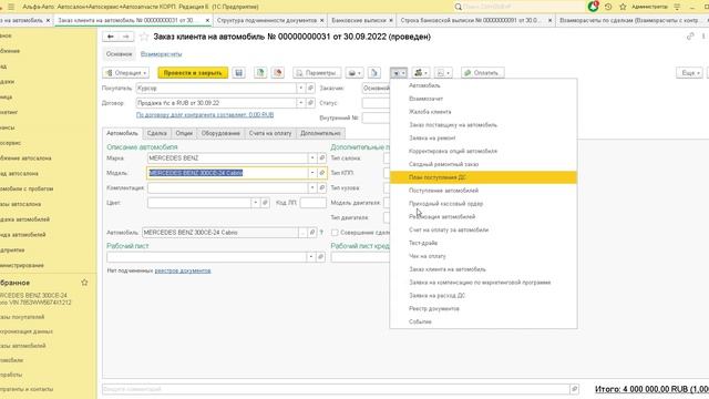 Пробитие чеков ККТ при оплате продажи автомобиля в программе Альфа-Авто редакция 6