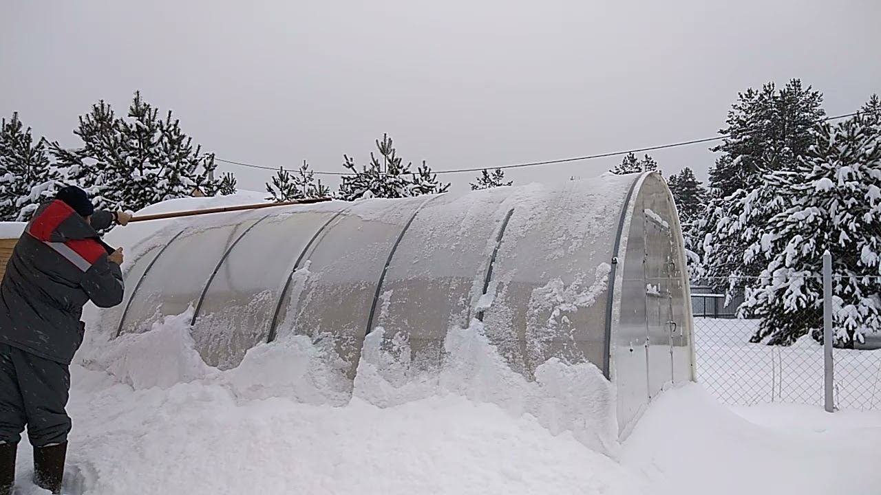 Убираем снег с теплиц