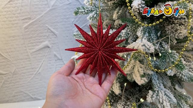 332313 Елочное украшение Звезда многогранная с глиттером красная 12см