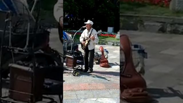Старенький дедушка на улицах одного из крымских городков отжигает, играя классику тяжелого рока!