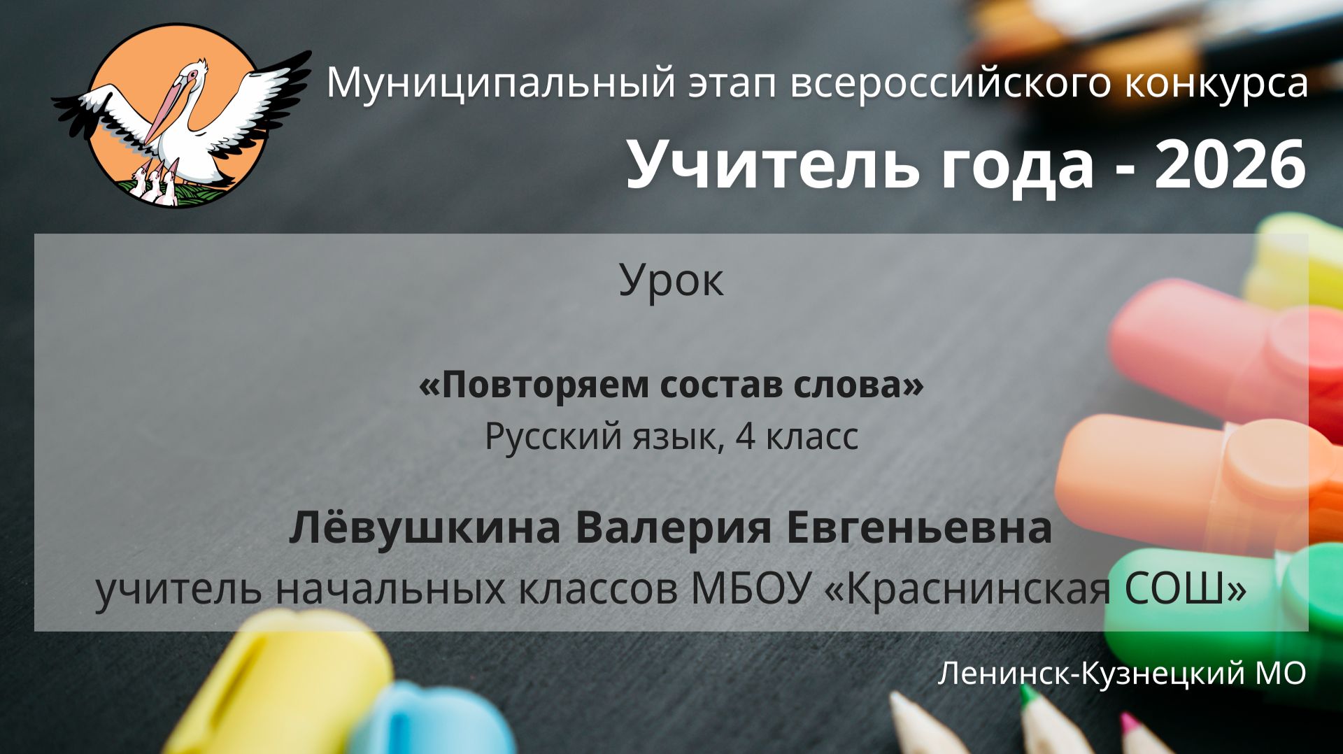 Лёвушкина Валерия Евгеньевна, учитель начальных классов МБОУ «Краснинская СОШ» Русский язык, 4 класс. «Повторяем состав слова» К материалу: https://nmclk.ru/22587/k-ug_2026