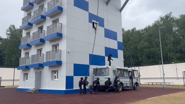 Учебная отработка действий полиции по освобождению заложников из автобуса.