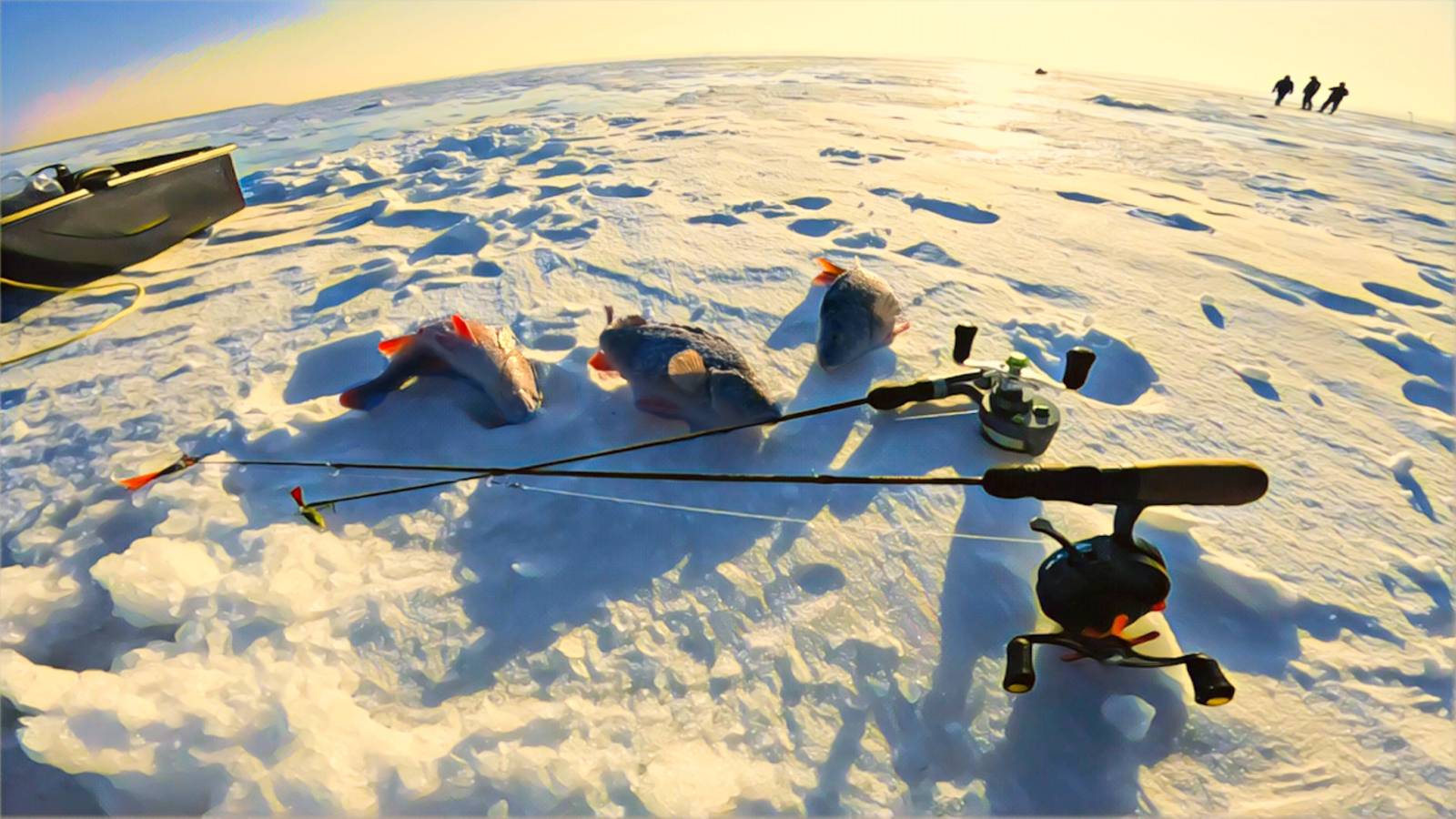 Привет Дружище!!! Сегодня ввязались в очередную авантюру. Нет бы нам - опытным "морским" рыболовам отправиться на проверенные точки, с утра и до вечера пытать судака и провоцировать на поклёвки жирных окуней, но нет, мы опять "курим" карты и мониторим отчёты, опять ищем что то новое и интересное. Сегодня отправились опять на новые участки, ещё бы, расстояние для нас не помеха - я полностью собрал и настроил и даже обкатал своего "мото-щенка" и мало того готов был отправиться на любые расстояния так еще и взял сегодня с собой своего 11 летнего сына - Боливар выдержит двоих!!! И ведь выдержал! Сначала мы поехали от Ягодного на право - в сторону Вислы. Мудрее было, наверное, просто приехать в Вислу и уже поискать новые точки на против, но у нас был другой план. По дороге встретили неприятную трещину окаймлённую торосами. Сама брешь была закрыта льдом, и проверяя его надёжность я естественно ухнул в воду почти по самые не балуйся. Благо ветер и мороз моментально превратили эту неудачу в кристалическую плёнку которую я махом стряхнул как вторую кожу со своих сапог и штанов. Проверили интересный участок и даже поимели несколько подходов к приманкам. Ветер, к слову, выдул из наших тел всё тепло в первые 10 минут пребывания на льду. Посовещались и двинули на промежуточную точку между нашей "рабочей" точкой в Ягодном и Вислой. Там была обширная коса с глубинами до 5 метров... Ну вот идеальное, казалось бы, место для толстых окуней... Разошлись "звездой" во все стороны косы и за все время ни у кого не было даже намёка на присутствие в воде чего либо. Собрались и рванули опять большой переезд на нашу проверенную точку. Когда мы туда прибыли время было уже далеко заобеденное и оставалось только лишь 3 часа на облов довольно большой акватории. Рыба обнаружилась практически сразу, и даже у большинства из нашей тусовки были резкие выходы и подъёмы, но результата ни какого. Позже Саня ловит неплохого окуня, а Виталик на новый Вагнер 100 ловит 200грамового судачка... Уже что то... Мы с сыном обошли все возможные глубины от 6,5 до 13 метров и только лишь на 11 метровой глубине я поимел пару подъёмов к приманке... Далее принимаю роковое решение уйти на ранее отмеченную точку в эхолоте, на которой когда то были пойманы какие то (уже не помню) рыбейки. И это решение, в итоге, и принесло основной азарт и поимки рыбы на сегодняшней рыбалке!!! Для себя решили сделать некоторую паузу в поездках на моря. Во первых уже если честно надоело, ну а во вторых это довольно утомительно. ближайшие выезды сменим обстановку, снасти и географию поездок! Спасибо тебе за просмотр и твой чудный + тёплый лайк! Удачи на льду, Дружище и увидимся в следующем видео! Моя Телега - https://t.me/Vigrebnaya Моя группа в ВК - https://vk.com/public141290631 Мой канал на Рутубе - https://rutube.ru/channel/24695763/ Мой канал на youtube- https://www.youtube.com/@RomanZaharchuk