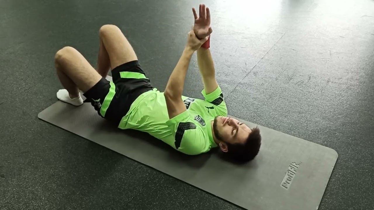 Сгибание (разгибание) плеча при помощи здоровой руки в положение лежа на спине