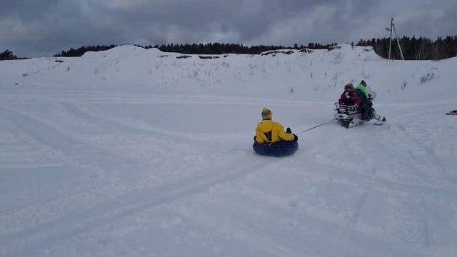 Снегоход покатушки на ватрушках. Yamaha 500. Зимние развлечение и активный отдых на тюбингах 2024г