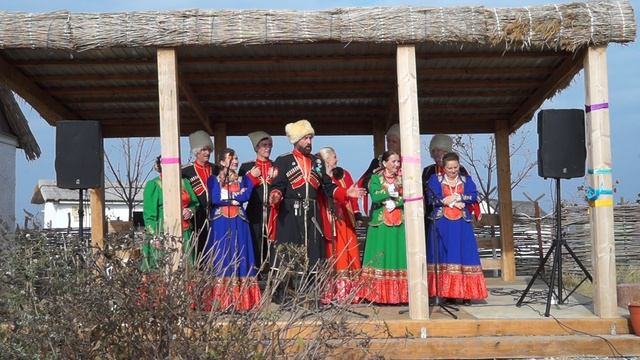 Выступление народного ансамбля казачьей песни "Колос" на подворье Тихорецкого района в этно-станице Атамань перед гостями. Октябрь 2017.
