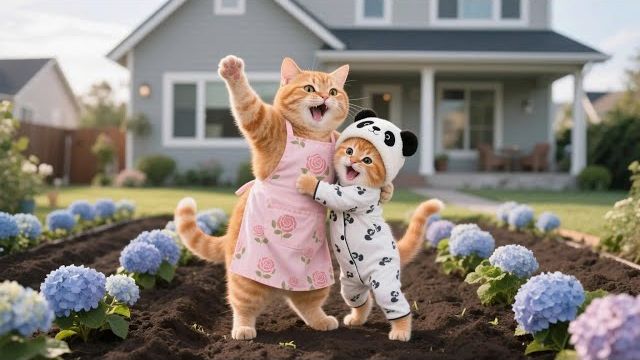 Джинджер спасает Увядший сад с Гортензиями, Пока Мама-Кошка в отъезде 🌸🐾 Смешные видео с кошками