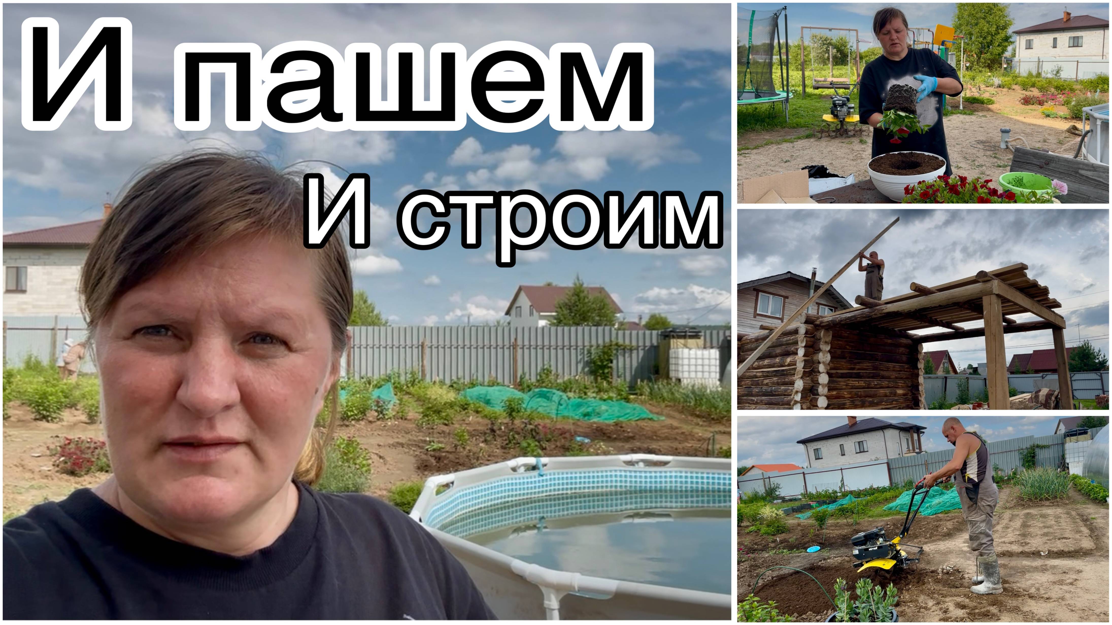 Пришла долгожданная посылка. Пересадила Петунию в кашпо. Выставили стропилы на баню