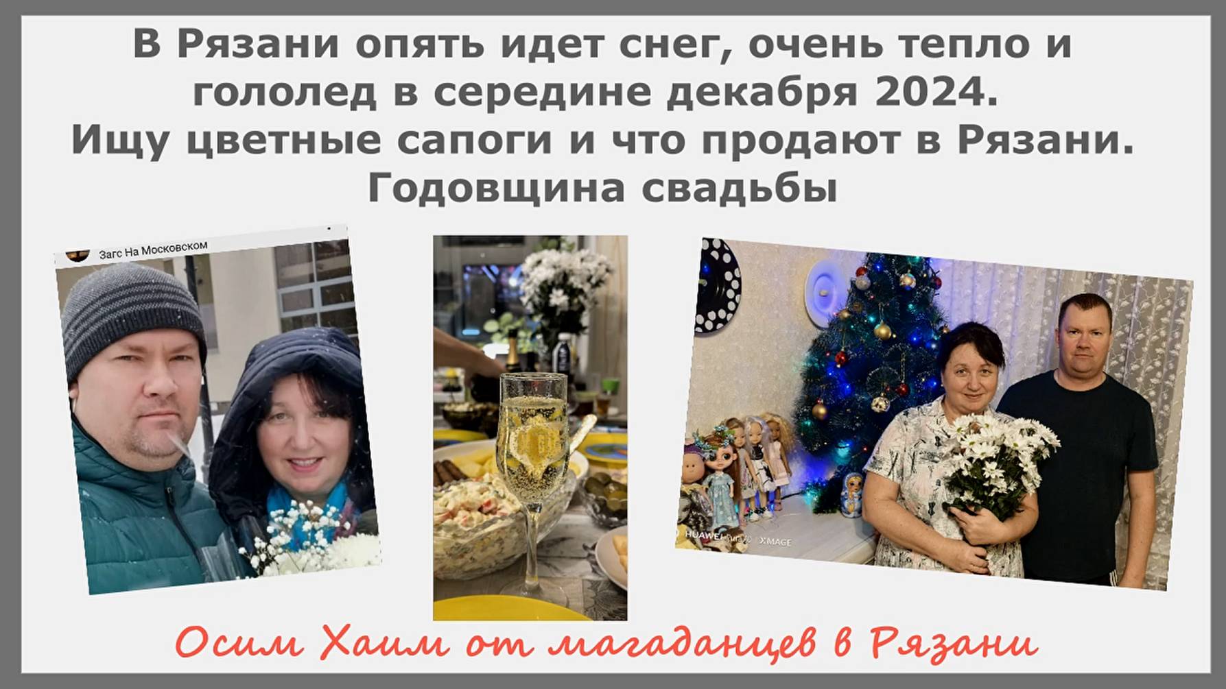 В Рязани опять идет снег, очень тепло, гололед в декабре. Ищу цветные сапоги. Годовщина свадьбы