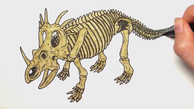 Рисование и раскраска скелета динозавра стиракозавра - Раскраски динозавров для детей
