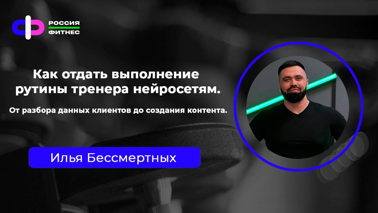 Какую работу тренера можно делегировать нейросети? Узнаем в рамках онлайна! Тема: Как отдать выполнение рутины тренера нейросетям. От разбора данных клиентов до создания контента. Эксперт: Илья Бессмертных, фитнес-директор сети фитнес-клубов «Апельсин», Создатель авторской школы для тренеров. Спикер различных мероприятий для тренеров и руководителей, автор специализированных блогов. Мастер спорта международного класса по жиму лёжа, четырёхкратный победитель Кубка России по силовым видам спорта. Автор программы и куратор курса по применению искусственного интеллекта и нейросетей в фитнесе для руководителей и тренеров. План эфира: • chatgpt как личный помощник для тренера — учимся работать с ним • помощь в составлении контент-плана и реализации через нейронки • как использовать нейросеть в своём обучении и личном развитии