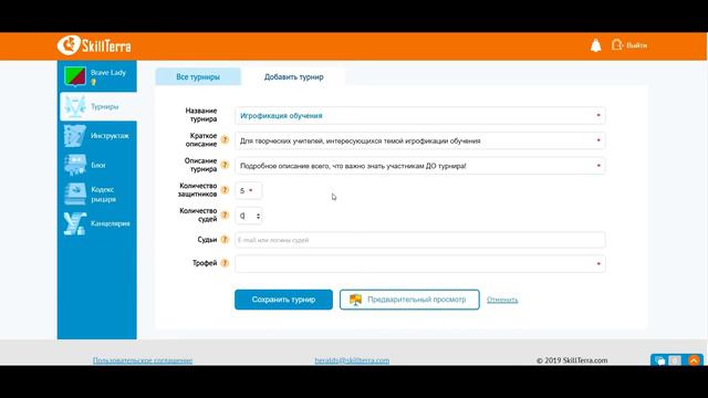 Добавление турнира