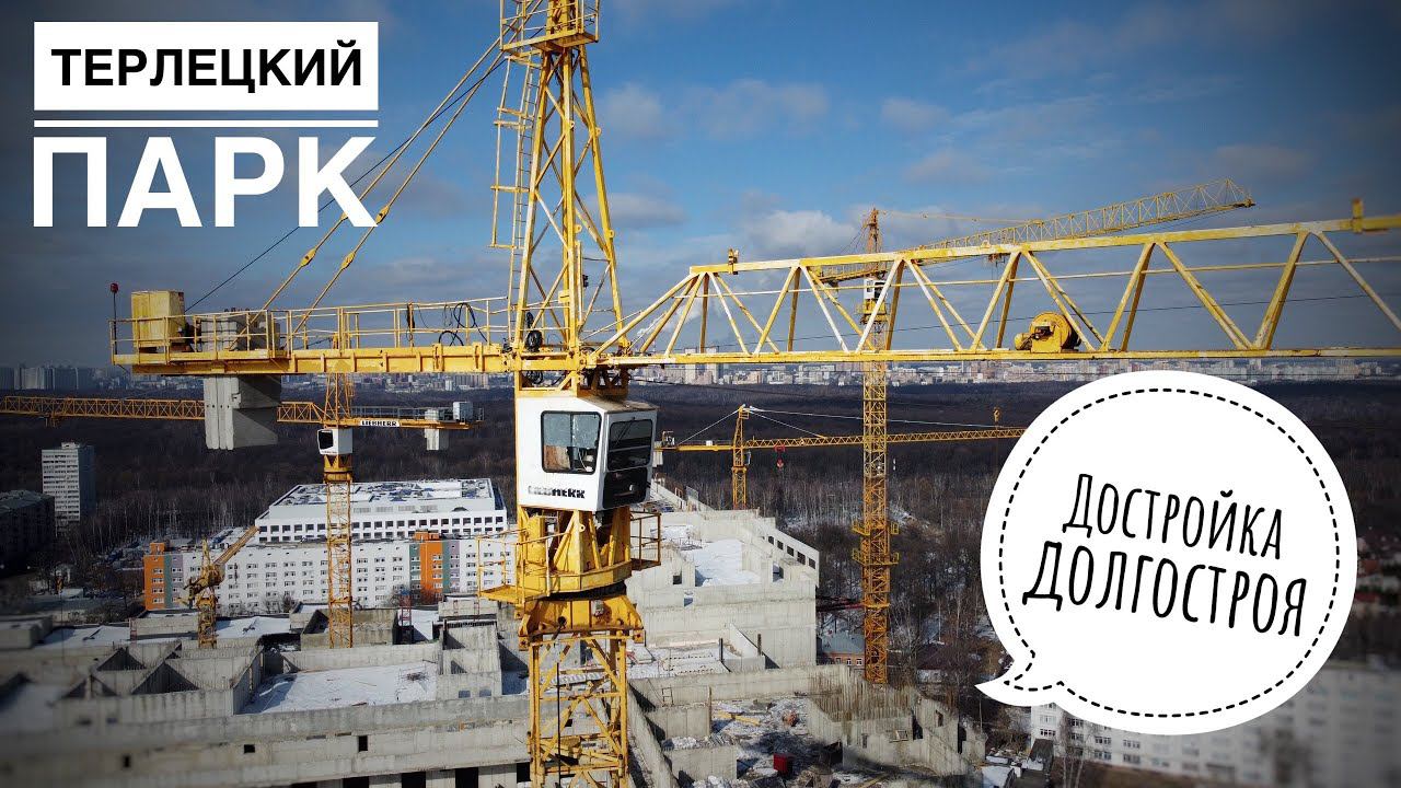 Достройка долгостроя. ЖК ТЕРЛЕЦКИЙ ПАРК. Перово с высоты. Old tower cranes at the construction site