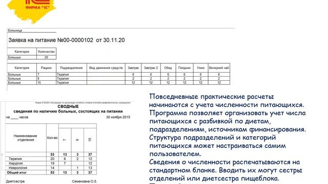 Обзор конфигурации "1С:Медицина. Диетическое питание,