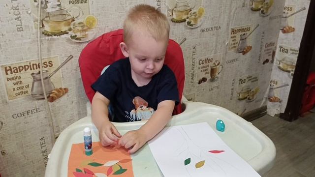 Марку 2 года и 6 месяцев Учимся клеить листочки