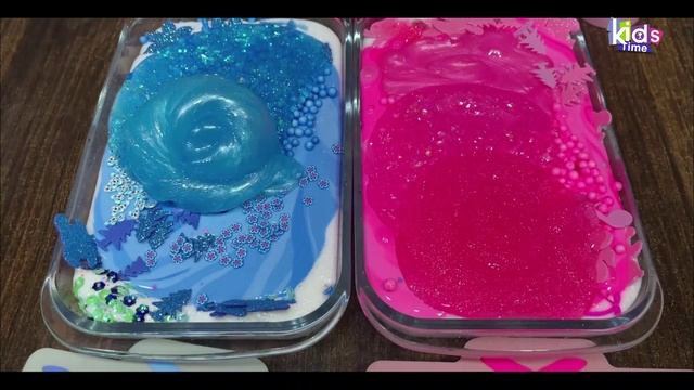Слаймы - СИНИЙ против РОЗОВОГО I Смешивание глянцевого слайма I Удовлетворительный слайм