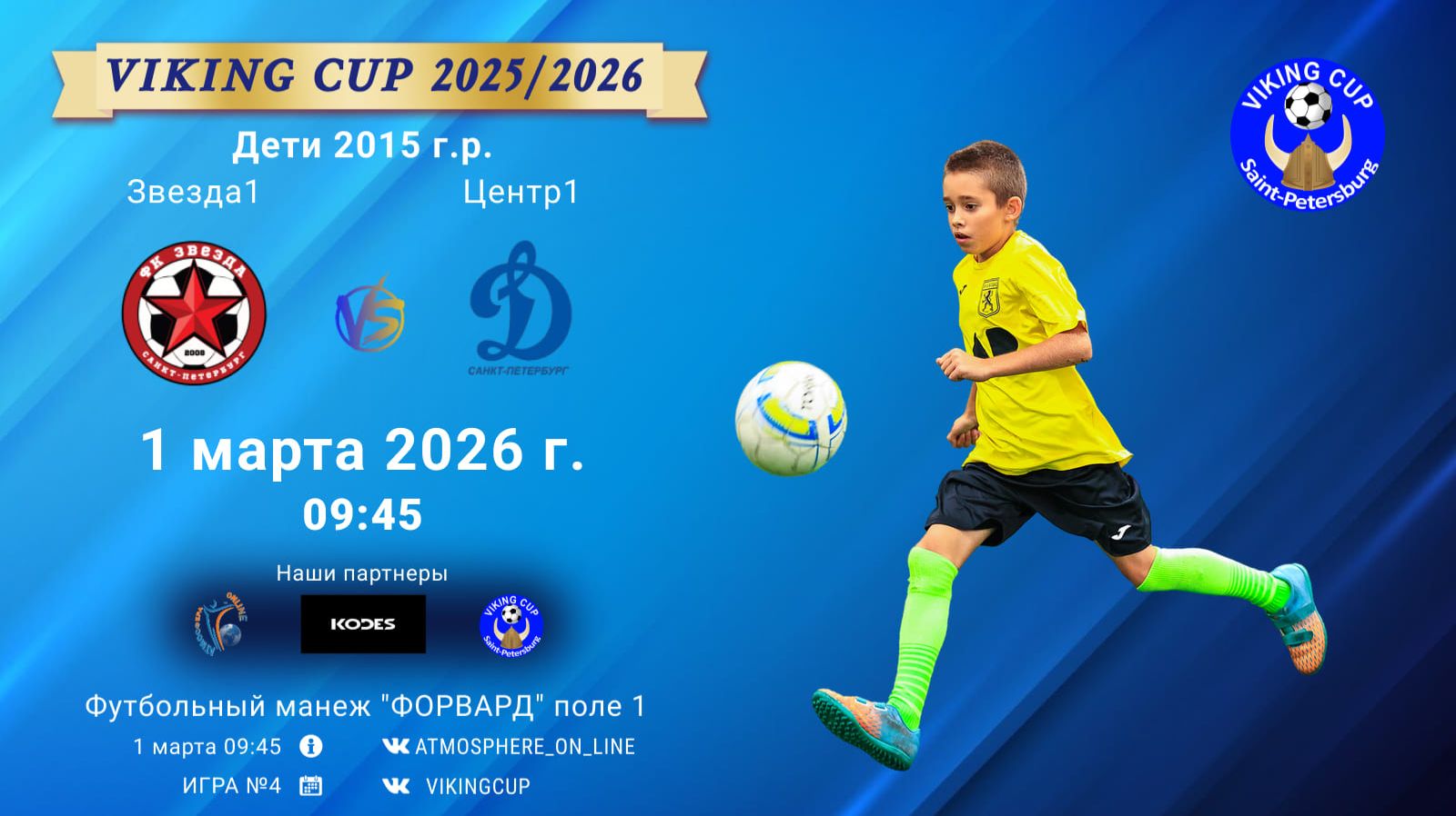 VIKING CUP среди команд 2015 г.р. (U11), Поле 1 1 марта 2026 САНКТ-ПЕТЕРБУРГ, ФЦ "Форвард" Звезда1-Центр1/VIKING CUP, Игра №4, 01-03-2026 9:45