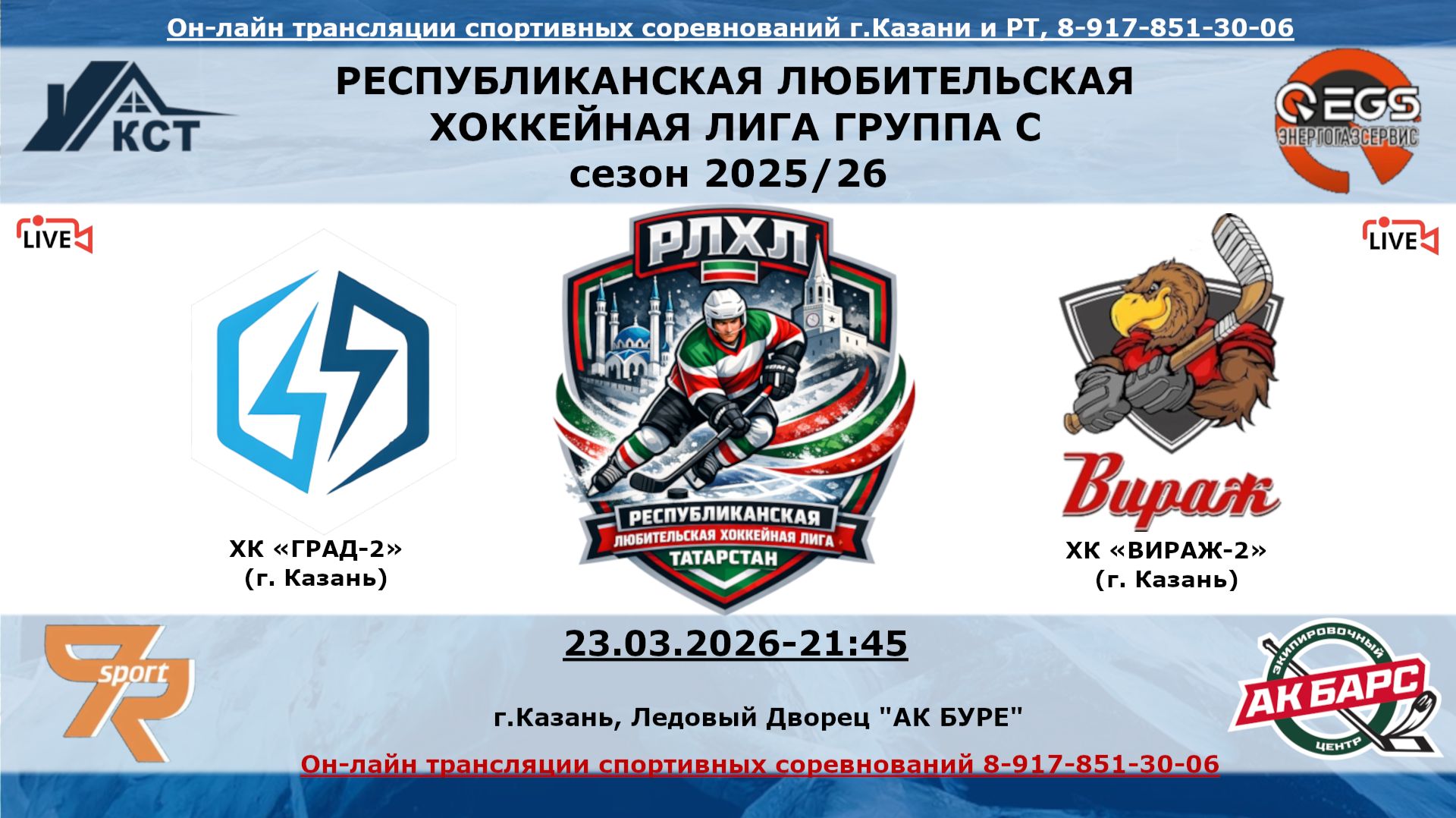 ХК «ГРАД-2» (г. Казань) - ХК «ВИРАЖ-2» (г. Казань)