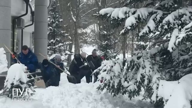 Лукашенко с сыном Колей разгребают снег... ЛОПАТАМИ