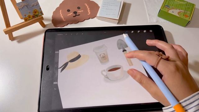 draw with me #9 ? free watercolor digital sticker ✏️ iPad Procreate + Unboxing Daebak Box Korea !