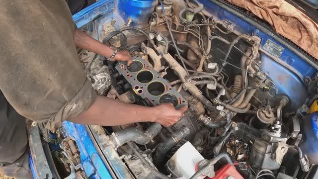 Процесс ремонта автомобильного двигателя.