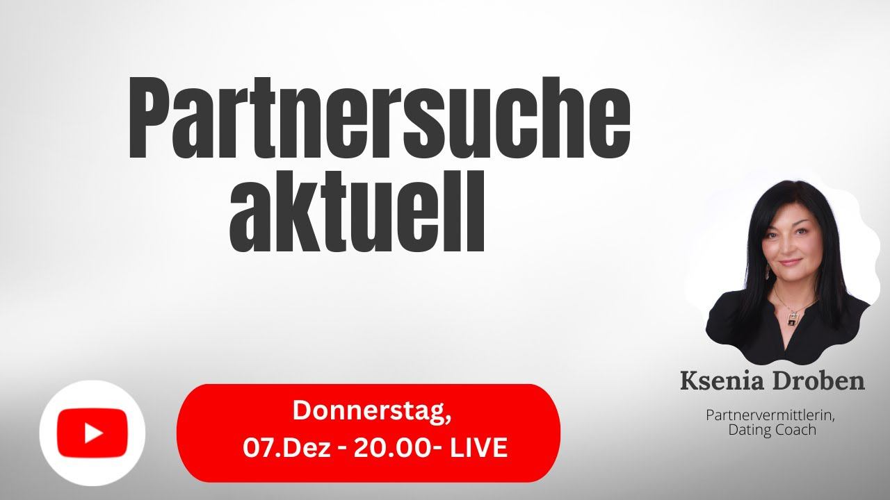 heute treffen wir zum wöchentlichen Webinar, um über die Frauen und die Welt zu sprechen. Ich erzähle Ihnen über paar Geschichten, die bei uns in der Agentur passiert sind, berichte über Vorbereitung auf nächstes Schloss-Wochenende und über die nächsten Events Das Webinar „Partnersuche aktuell“ findet heute, am Donnerstag den 07.12 um 20.00 statt Wo: YouTube Channel "Ksenia Droben": https://www.youtube.com/@KseniaDrobenPartnervermittlung Alternativ auch Facebook: https://www.facebook.com/ksenia.droben/ Twitch: https://www.twitch.tv/kseniadating LinkedIn: https://www.linkedin.com/in/ksenia-droben-911289148/ Instagram @kseniadroben.agency Tiktok: @kseniamatchmaking Dauer: Ca. 60 Minuten Ich freue mich auf Sie uns Ihre Fragen ** Danach treffen wir uns zu einer Online-Beratung zur Partnersuche über meine Partnervermittlung. Ab 2024 müssen wir die Preise erhöhen, deshalb sollte man auf jeden Fall noch dieses Jahr mit der Partnersuche beginnen. Online Beratung findet über Zoom-App statt – Donnerstag, den 07.Dezember um 22.00 Link zu Beratung: https://us02web.zoom.us/j/82905302978?pwd=bStZcGZpTkNBbkZUakEwbkFRODc4UT09 Oder Meeting-ID 829 0530 2978 Kenncode 07 *** Am Montag, den 11.Dezember beginnt Dating Boot Camp, wo wir mit Ihnen Schritt für Schritt die Partnersuche analysieren, damit Sie schnell und erfolgreich eine glückliche Beziehung anfangen können Mehr Information finden Sie hier https://droben-partnervermittlung.de/dating-boot-camp/ Liebe Grüße, Ksenia Droben www.droben-partnervermittlung.de Whatsapp +49 1520 36636532020