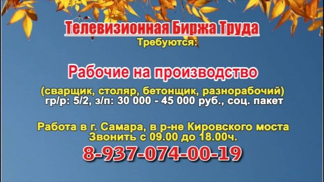 Вакансии и телефоны прямых работодателей в специализированной программе по трудоустройству "Телевизионная Биржа Труда" - г.САМАРА, г.ТОЛЬЯТТИ
