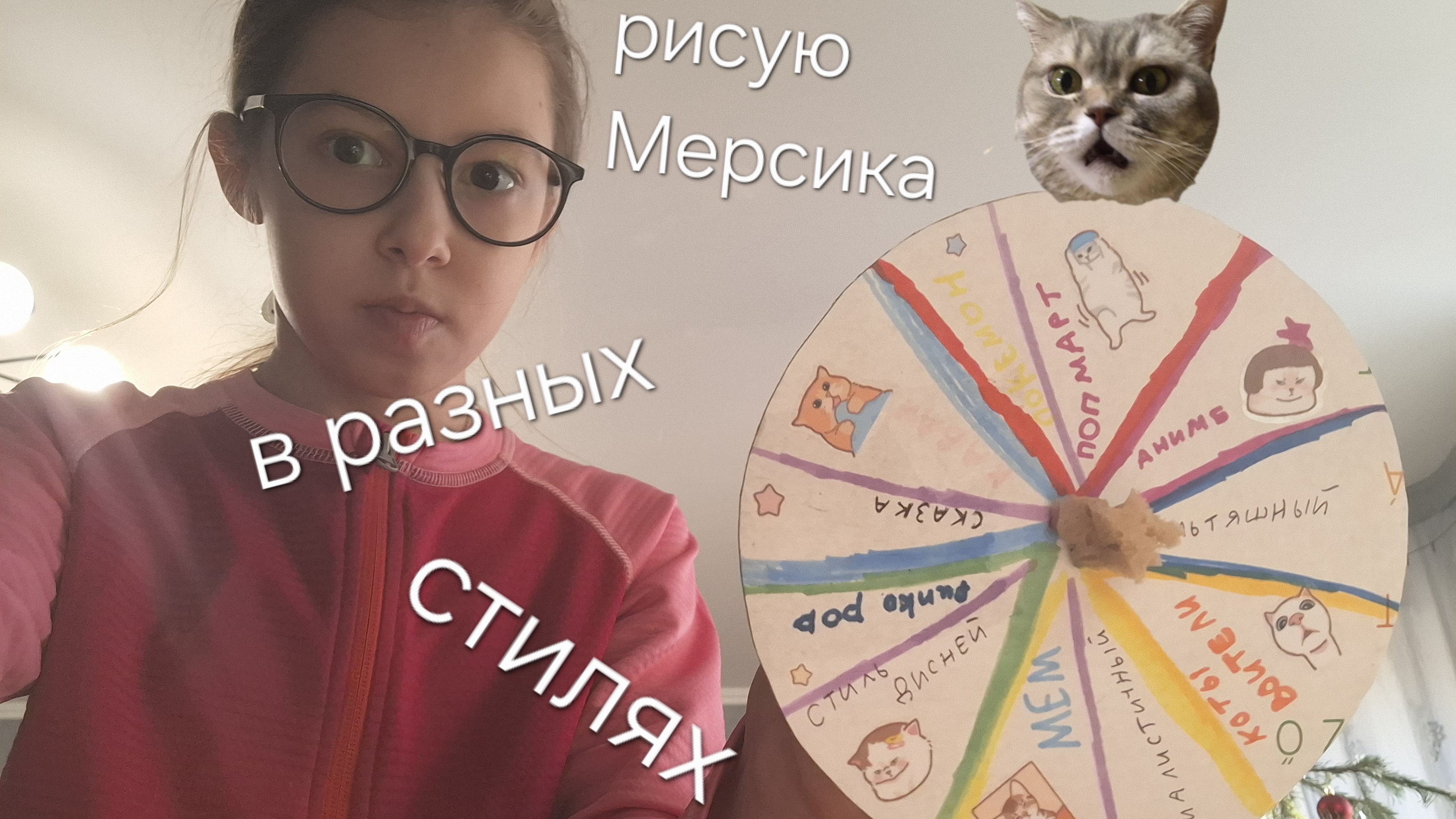 теперь я решила смастерить Колесо Фортуны на котором написаны интересные и прикольные стили. после того как я его покручу мне надо нарисовать в том стиле который выпал свою кошку 🤯
