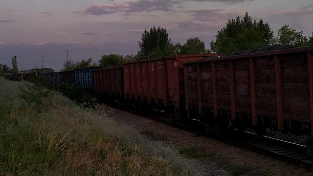 VID_20240609_200320.mp4. 2ТЭ25Км - 0032 с грузовым поездом.