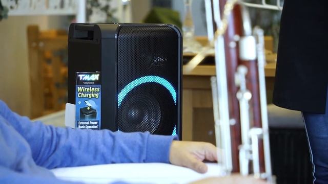 Prijenosni zvučnik Panasonic SC TMAX5 namijenjen za zabave je i svojom veličinom na neki način prilagođen manjem broju ljudi. U svakom slučaju, iznenađujuća kvaliteta zvuka uz niz mogućnosti i praktičnosti, pa sve do jednostavne lakoće prenosivosti. A sve to, uz i više nego povoljnu cijenu. Definitivno, best buy u svojoj kategoriji. Za potrebe snimanja priloga, pomogao nam je i vrsni majstor fagota, glazbenik Žarko Perišić.