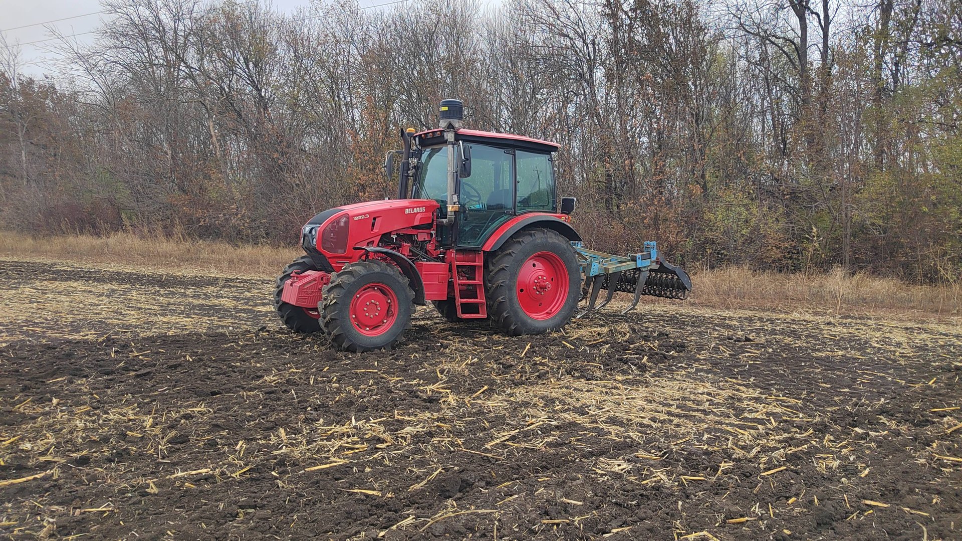 МТЗ-1222.3 с чизельным плугом.Безотвальная обработка почвы.