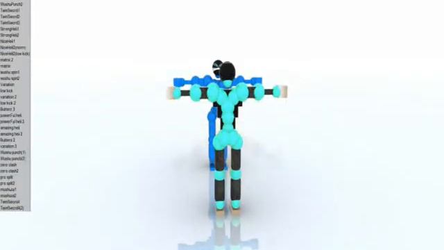 Инструкция : 1-hold all 2-relax neck 3-raising left should. , lowering right should. 4-contract both wrists 5-contracting left elbow , exten. right elbow 6-contracting left pec , extend right pec 7-right rotating chest 8-right bend lumbar 9-contract abs 10-extend both glutes 11-relax left hip contracting right hip 12-contract left knee , extend right knee space(50 fr) 1-contracting neck 2-raising right shoulder 3-extend both wrists 4-extend left elbow 5-extend left pec , contract right pec 6-left rotat. chest , left bend. lumbar 7-holding abs and hold right glute 8-extending right hip, contract left hip 9-extend left knee , hold right knee 10-extend right ankle