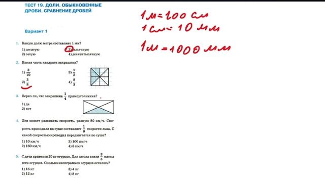 Тест 19. Доли. Обыкновенные дроби.
