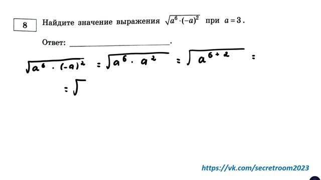 Задание 8. Найдите значение выражения? Тема задания - возведение в степень и извлечение квадратного корня Группа ВК для подготовки к ОГЭ: https://vk.com/secretroom2023 Видеокурс для подготовки к ОГЭ по математике: https://stepik.org/a/193288