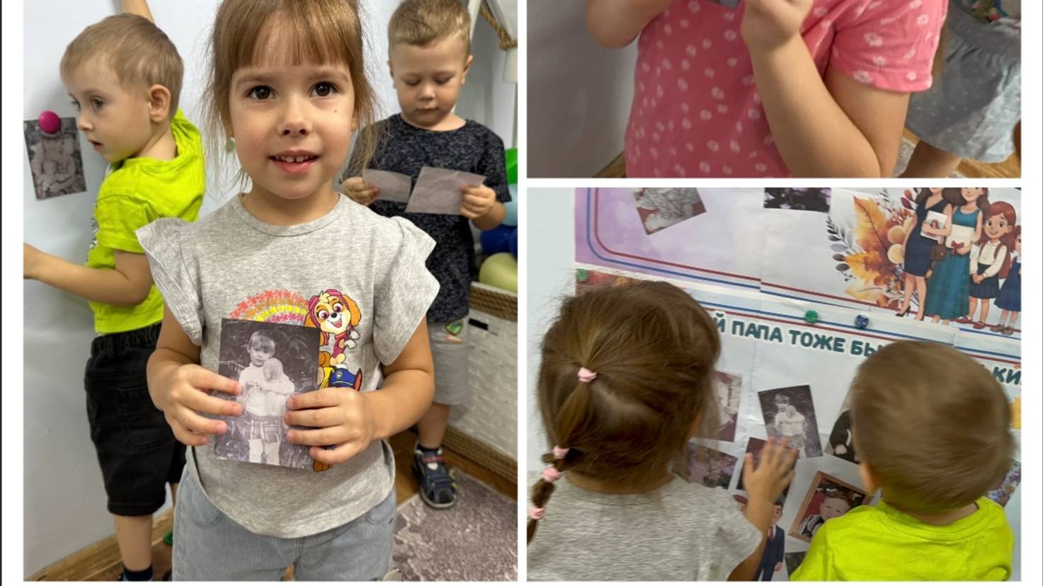 Эту новость рассказала Мне бабулечка моя, Что моя родная мама Тоже маленькой была! Я сначала растерялась, Ничего не поняла, Но бабуля рассмеялась, И альбомы принесла….. Родители принесли свои детские фотографии 🤳 любознательные «Морячки» разглядывали изображенных на них людей,предполагая,кто же это может быть 🤔 Кто-то с интересом разглядывал знакомые лица 🫣кто-то из детей с восторгом кричали «А вот Я»🙋🏻♀️но какое удивление было услышать «Это Ваши МАМЫ И ПАПЫ,когда они были маленькие».👧🏼🧒🏻 Чтоб не так было грустно утром провожать родителей,маленькие непоседы сделали коллаж «Мои родители тоже были маленькие»,теперь «Морячки» весь день в садике со своими мамами и папами👩🏼🧑🏻