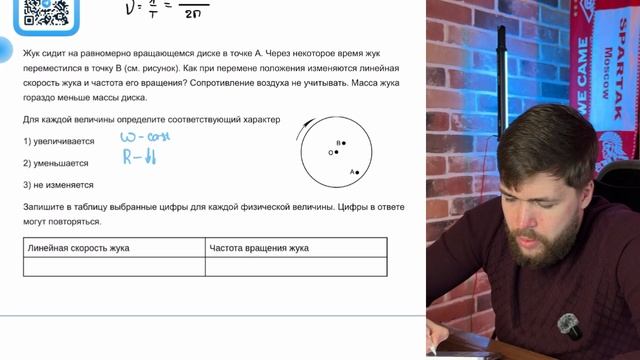 Жук сидит на равномерно вращающемся диске в точке А. Через некоторое время жук переместился - №40603