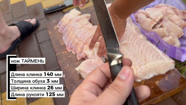 В разделке сома задействованы: филейный нож из стали ELMAX нож «Таймень» из стали N690 тяпка для мяса Х12МФ