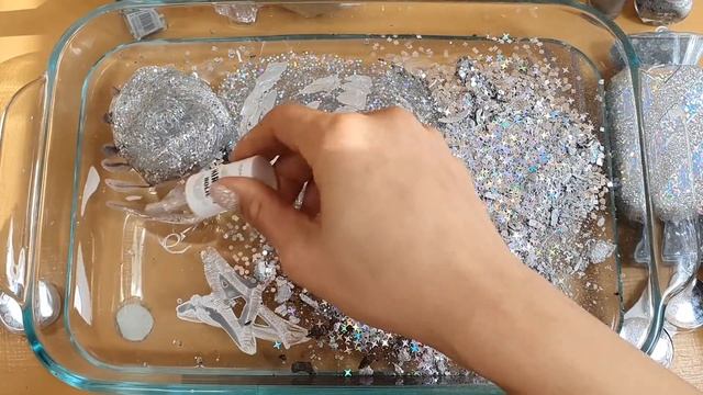 «Серебряный» СЛАЙМ - смешивание «серебряного» макияжа с блёстками в слайм. ★ASMR★ Удовлетворительно