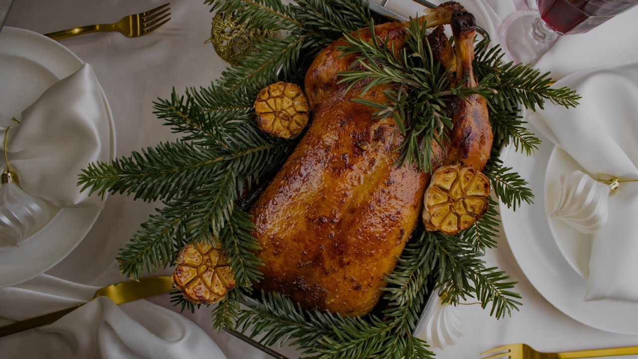 Одна тушка утки - 2кг Груша - 400гр Соевый соус - 50мл Мёд - 40мл Чеснок - 20гр Свежий имбирь - 30гр Соус бальзамик - 30гр Чеснок - 2 гл. и пару веточек розмарина для украшения. Предварительно тушку обильно обсаливаем и убираем на 18 часов. После смазываем соусом и начиняем грушей. Утку накрываем фольгой и запекаем 2.5-3 часа при 180 градусах. Затем ещё 8 минут при 220°, уже без фольги. *видео рецепт можно посмотреть по ссылке в шапке профиля
