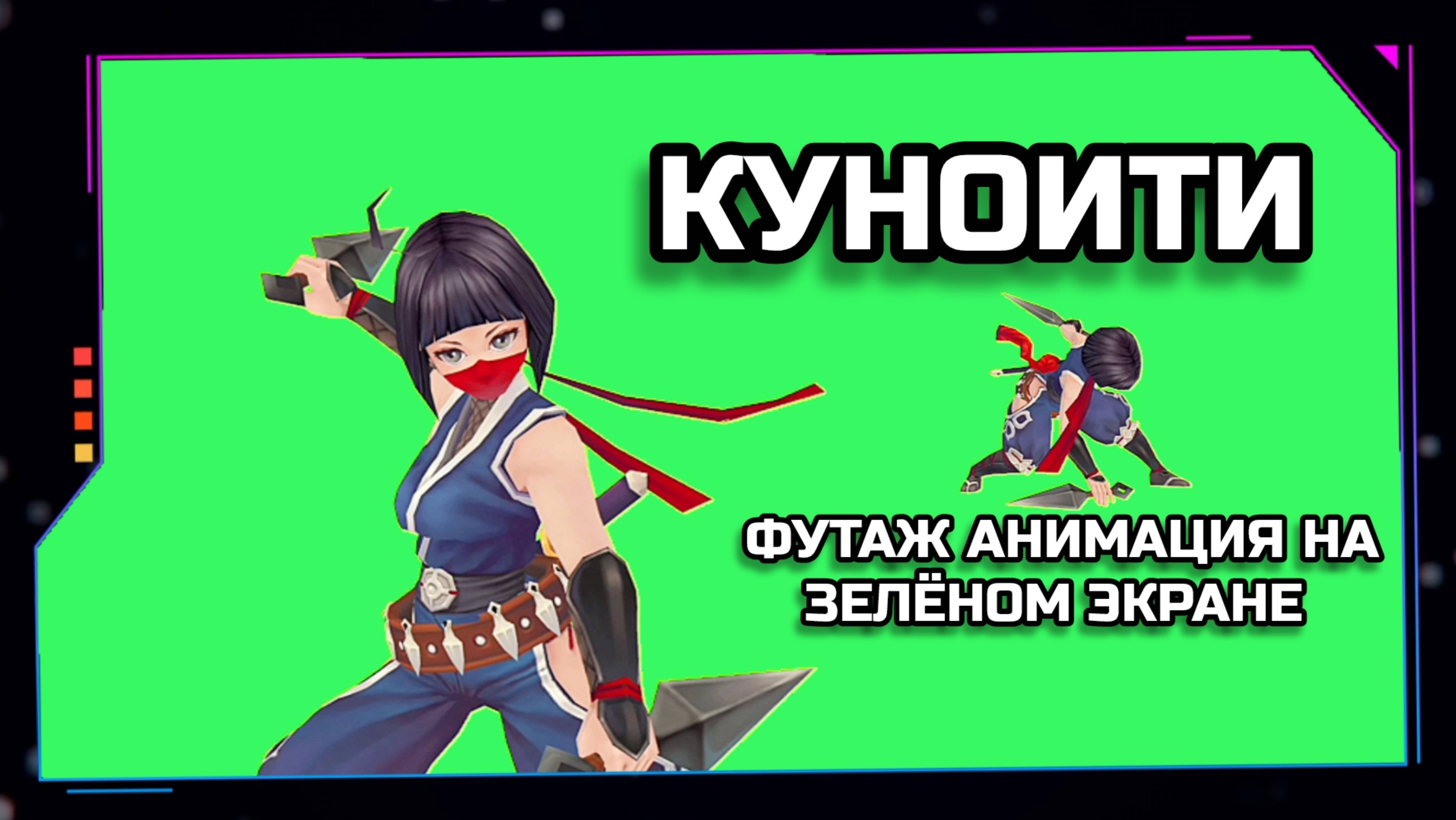 КУНАИТИ-ДЕВУШКА НИНДЗЯ видео Green Screen футаж. ХРОМАКЕЙ АНИМАЦИЯ на зелёном фоне.